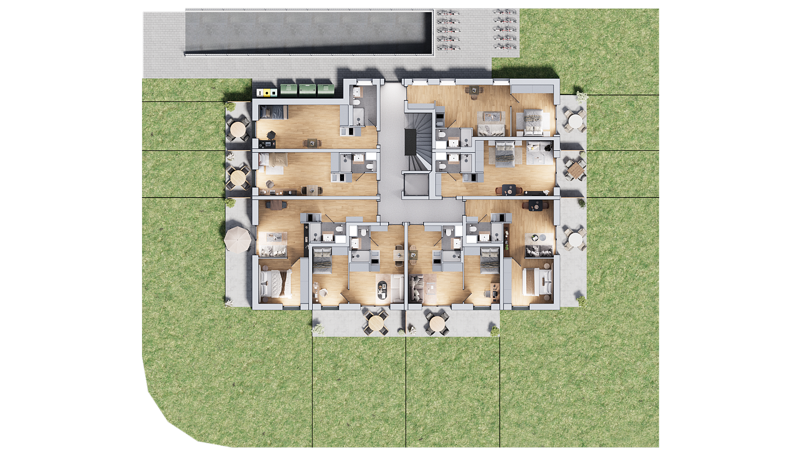 Bei unserem Projekt setzen wir bewusst auf eine moderne, klare Architektur mit hellen Fassaden, bodentiefen Fenster, großzügigen Balkonen und Terrassen. Innen sorgen Fußbodenheizung, elektrische Rollläden und moderne Bäder in zeitlosem Design für besonderen Komfort. Die Ausstattung ist auf langfristige Vermietbarkeit ausgelegt: robust, hochwertig und zeitlos. Wohnungen und Keller (mit Washing Lounge) sind barrierefrei zu erreichen. Dreifach verglaste Fenster, effiziente Heiztechnik, solide Dämmung: die energetischen Kennwerte liegen im optimalen Bereich. Das hält die Nebenkosten niedrig – ein starkes Argument bei der Vermietung Ihrer Immobilie!