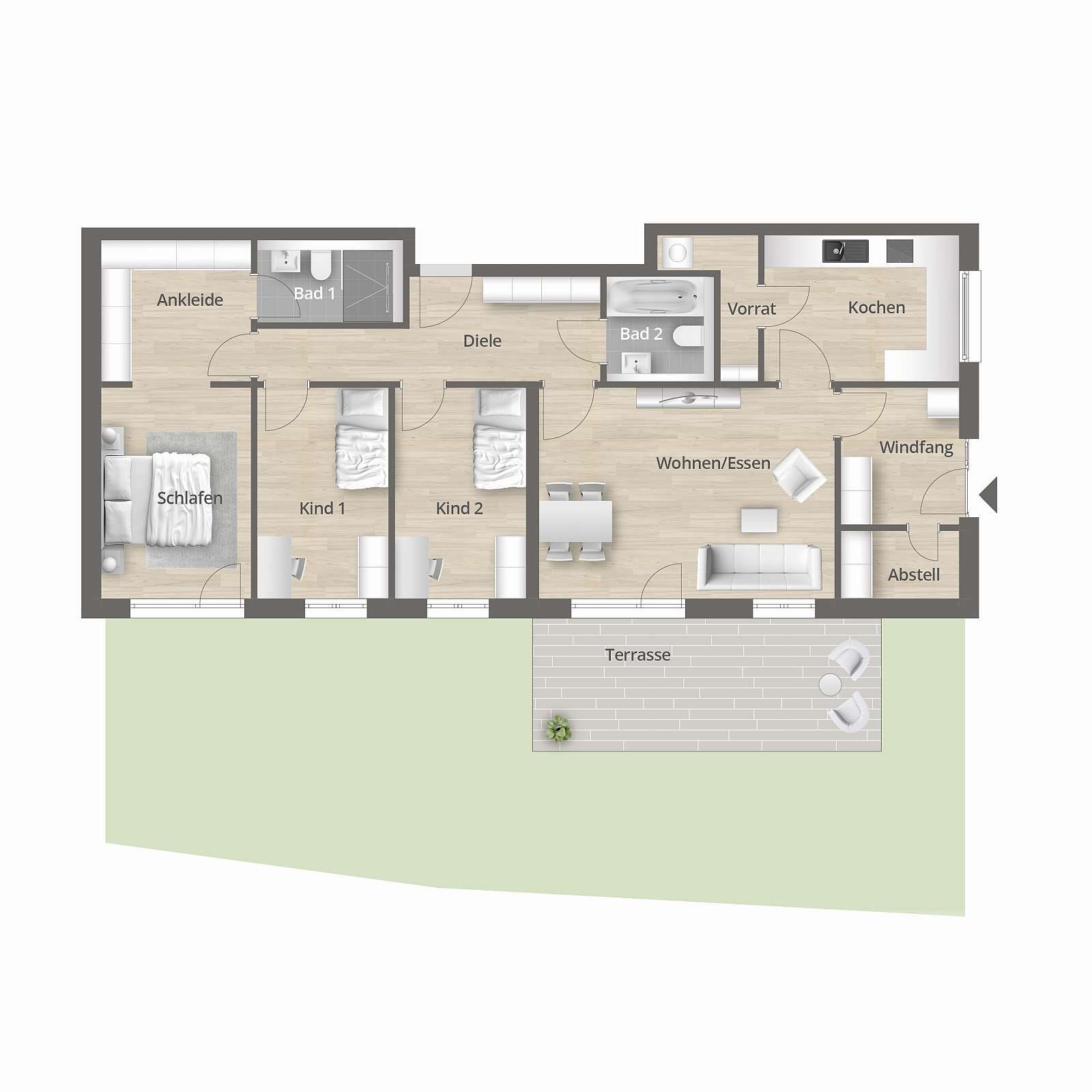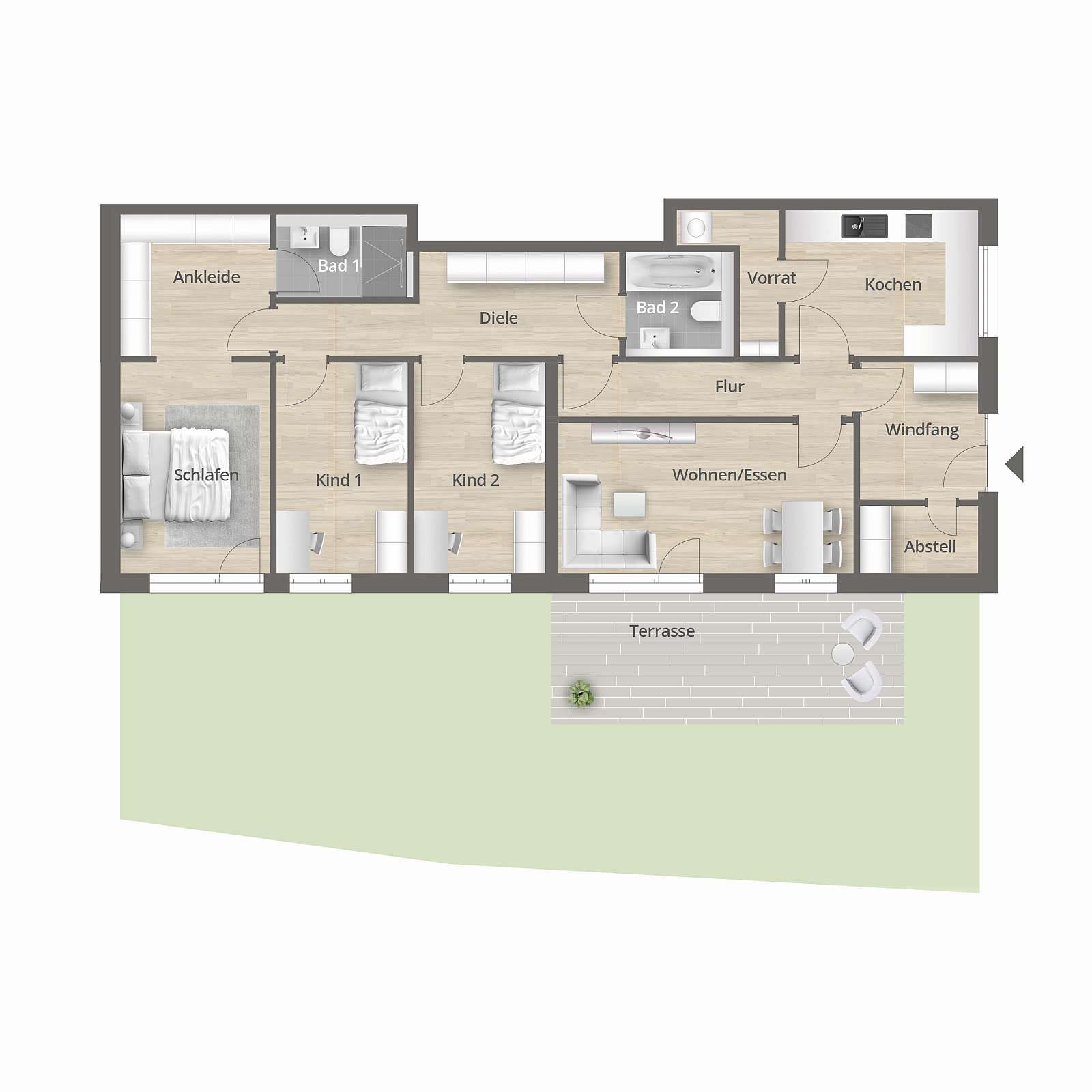 Von der Tiefgarage mit privaten Stellplätzen sowie Aufzügen in alle Wohnetagen, über die gepflegten Außenanlagen mit viel Grün und Platz zum Entspannen bis zu den repräsentativen Eingangsbereichen und Kfz-Stellplätzen haben wir bei der Planung an alles gedacht. So brauchen Sie sich um nichts mehr kümmern und können entspannt einziehen und Ihr neues Zuhause mit Leben füllen.